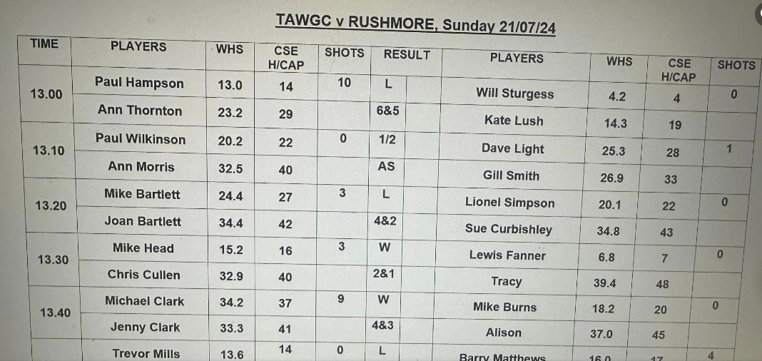 Well done to the Rushmore Team for winning 3.5 to 2.5 and we look forward to playing there in 2025
